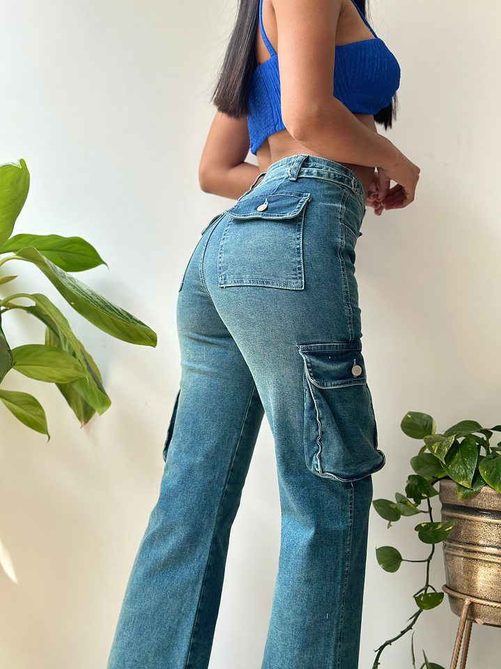 Pantalón Cargo Regulador Hebilla - Celeste