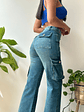 Pantalón Flare con Bolsillos Delanteros - Azul